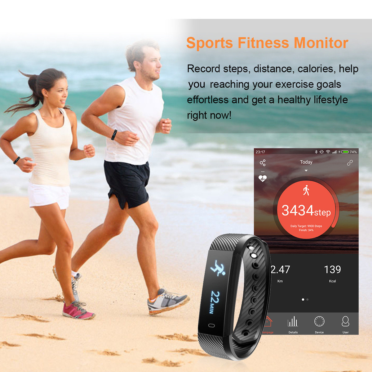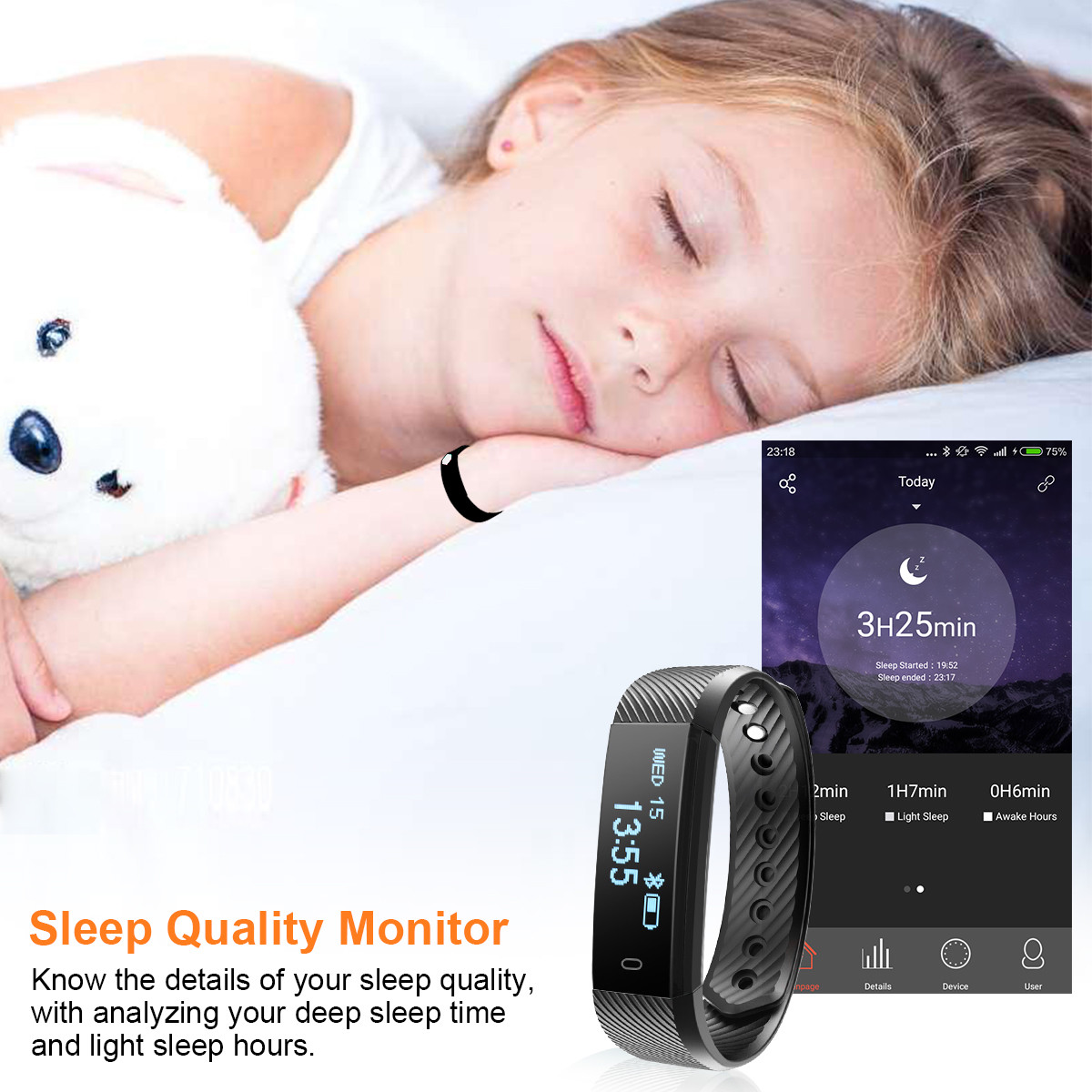 Diggro ID115 Smart Bracelet Bluetooth 4.0 Pedometer Calorie Sleep Monitor Call/SMS Reminder Sedentary Reminder for Android IOS. App: VeryFit for heart rate. This smart bracelet with OLED screen clearly displays health parameters including steps, calories, distance, time and so on.