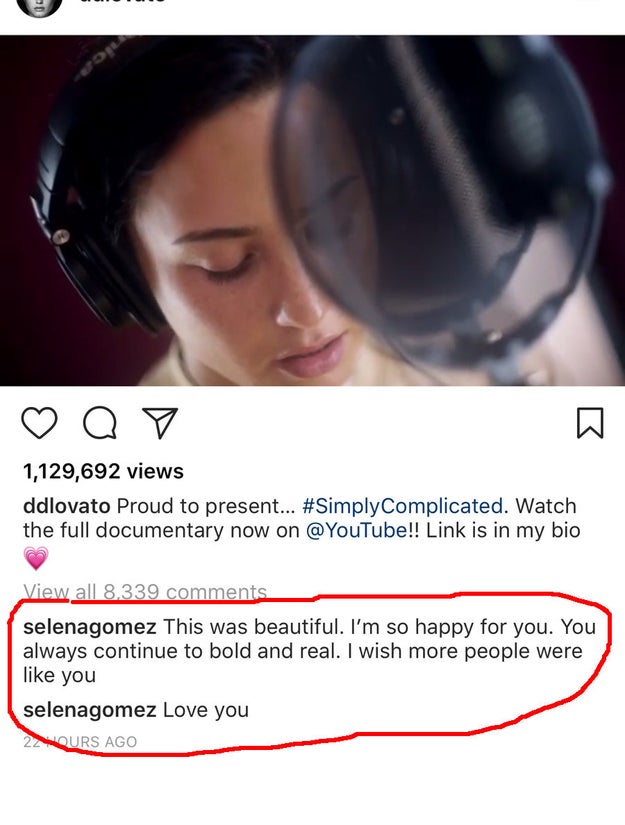 Selena commented on Demi"s Instagram, saying, "This was beautiful. I"m so happy for you. You always continue to [be] bold and real. I wish more people were like you. Love you."